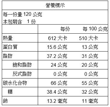 過敏原:澱粉、蛋、奶、黑芝麻